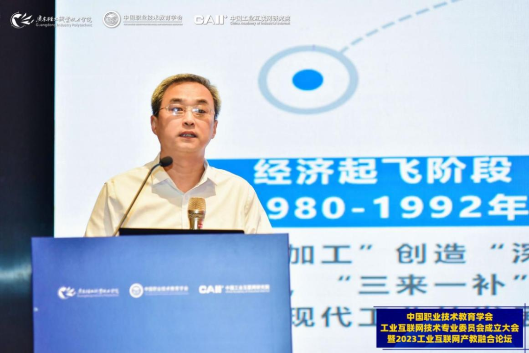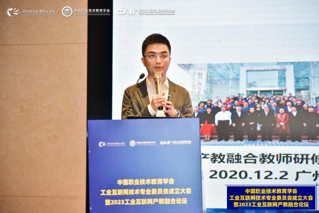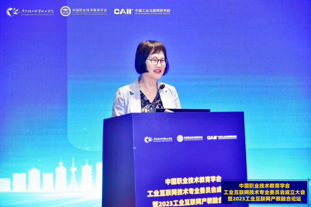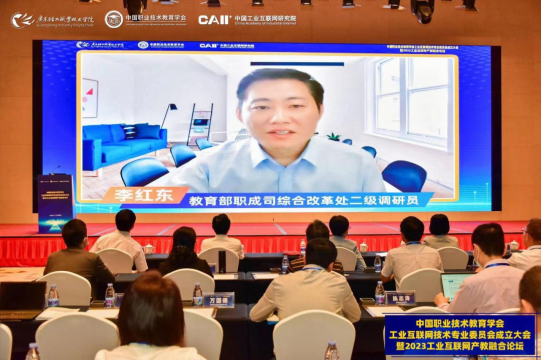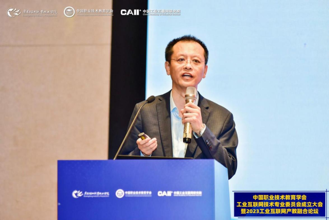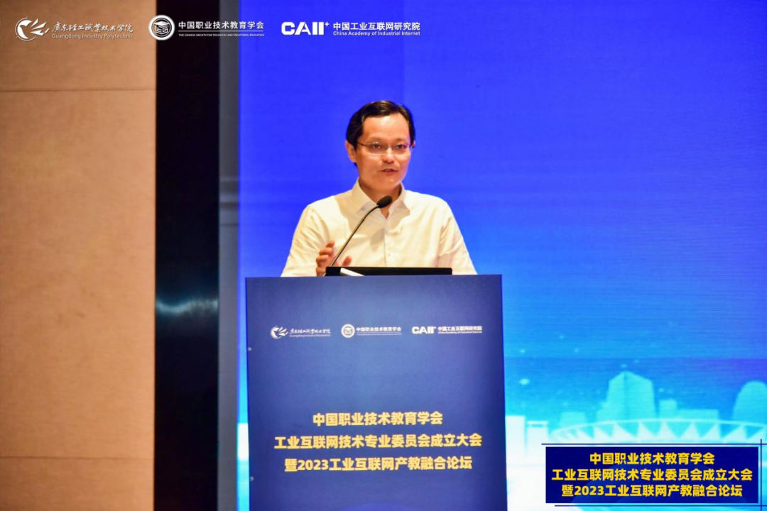 5月16-17日,中國職業(yè)技術(shù)教育學(xué)會工業(yè)互聯(lián)網(wǎng)技術(shù)專業(yè)委員會成立大會暨2023工業(yè)互聯(lián)網(wǎng)產(chǎn)教融合論壇在廣東佛山順利召開。中國職業(yè)技術(shù)教育學(xué)會會長、教育部原副部長魯昕,教育部職業(yè)教育與成人教育司綜合改革處二級調(diào)研員李紅東,廣東省教育廳二級巡視員吳艷玲,工業(yè)和信息化部教育與考試中心張任,廣東輕工職業(yè)技術(shù)學(xué)院黨委書記杜安國、校長盧坤建,中國工業(yè)互聯(lián)網(wǎng)研究院總工程師王寶友,中國職教學(xué)會科技成果轉(zhuǎn)化工作委員會副主任兼秘書長、中國科學(xué)院計算技術(shù)研究所研究員田霖等出席。來自全國職業(yè)院校、科研院所及企業(yè)的近200名會員單位代表線下參會,3000余人線上參會。