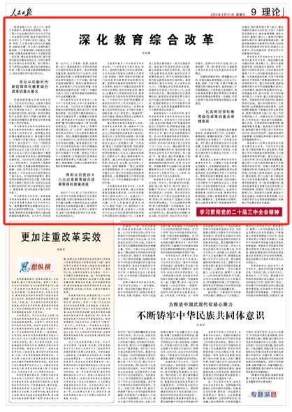 《決定》提出:“加快建設(shè)高質(zhì)量教育體系,統(tǒng)籌推進(jìn)育人方式、辦學(xué)模式、管理體制、保障機(jī)制改革。”同時,就深化教育綜合改革提出了一系列重點舉措。我們要認(rèn)真貫徹落實黨中央決策部署,求真務(wù)實抓落實、敢作善為抓落實,實現(xiàn)教育系統(tǒng)性躍升和質(zhì)變,為推進(jìn)中國式現(xiàn)代化提供全方位的人才支撐、智力支持。