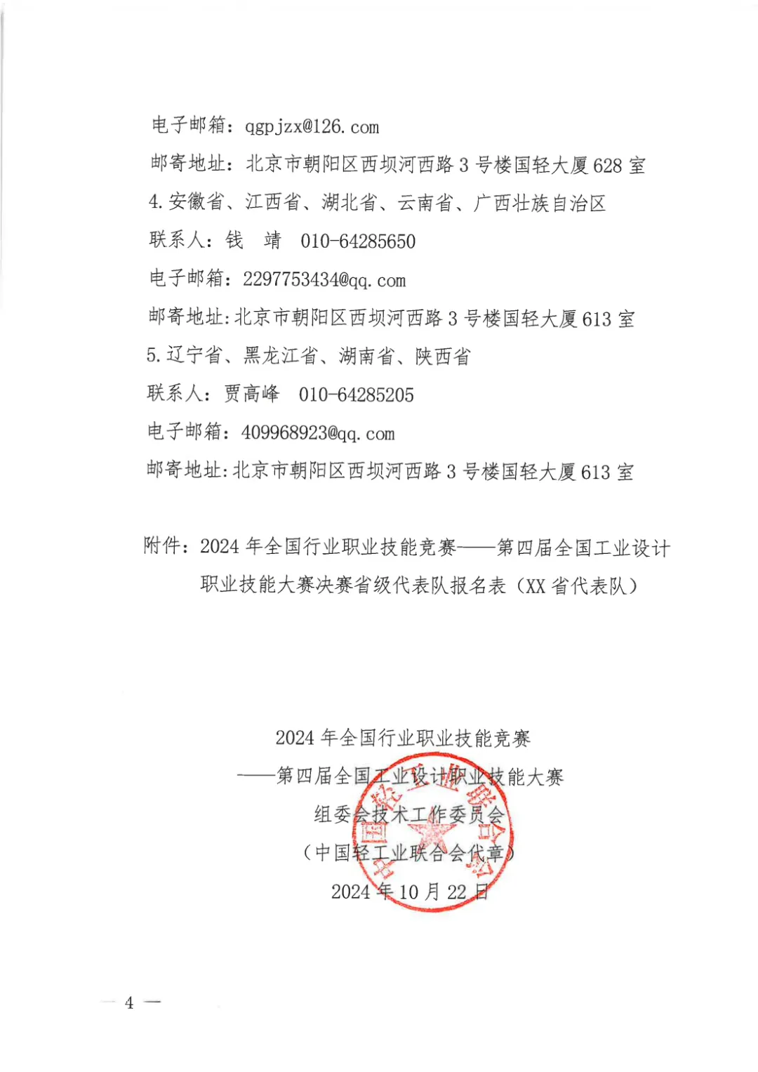 關于2024年第四屆全國工業(yè)設計職業(yè)技能大賽決賽報名的通知