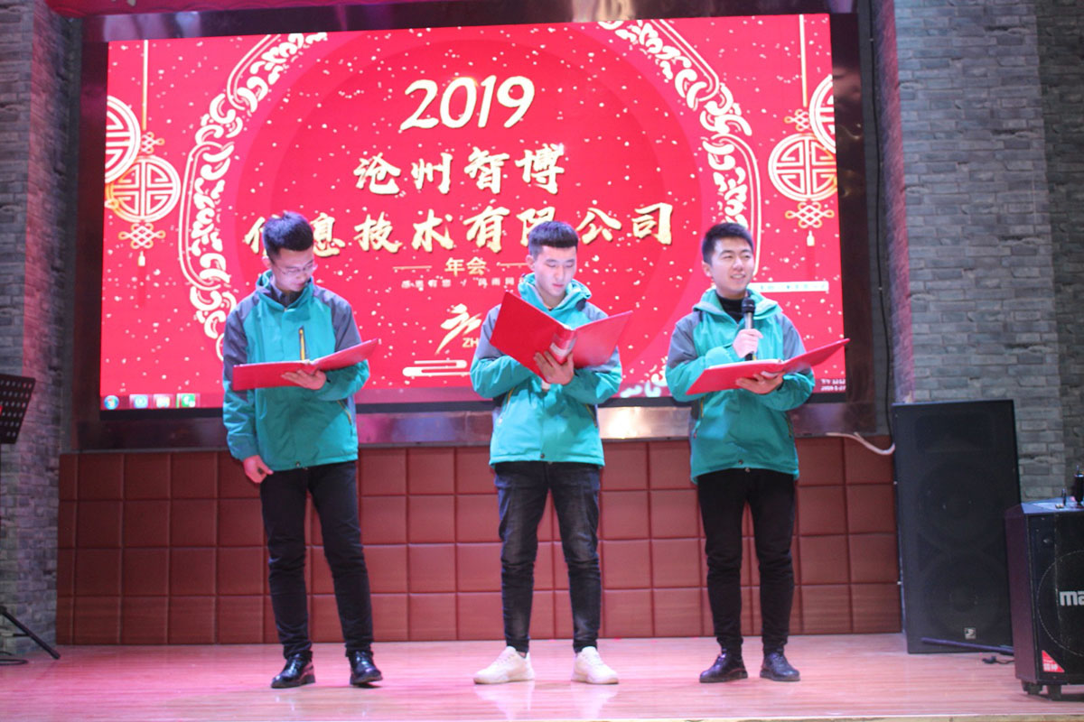 2019年1月27日上午,智博2019年度年會(huì)如約拉開(kāi)大幕。公司全體小伙伴共計(jì)40人參與了此次年會(huì)活動(dòng)。本次年會(huì)我們繼續(xù)采用了網(wǎng)絡(luò)直播+全程錄制的形式,有880人同時(shí)在線觀看。另外我們選擇了啟用四位主持人,為我們年會(huì)的順利召開(kāi)保駕護(hù)航。短短的一上午,小伙伴們的節(jié)目一項(xiàng)接著一項(xiàng),包袱一個(gè)接著一個(gè),掌聲一波接著一波,歡笑在這里交織,才藝在這里碰撞。